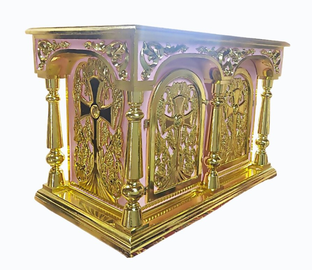 Жертовник п'ятиколонний № 913, рожевий з позолотою, Луцьк
