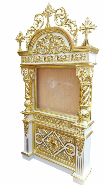 Розмір кіота - 120 см х 30 см х 240 см - Особливості: позолота (імітація золота), тонування лаком