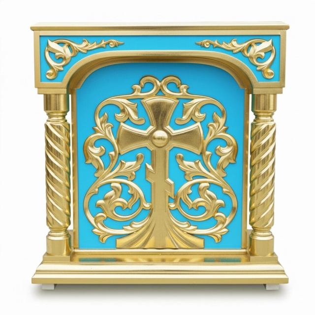 Представляємо колекцію храмових аналоїв, що поєднують глибокий, насичений синій колір (символ вічного Неба та Богородиці) із витонченим золотим декором. Ці аналої стануть справжньою окрасою центральної частини храму, підкреслюючи урочистість богослужіння та створюючи гідне місце для покладання ікон, Євангелія чи хреста.