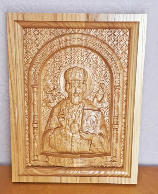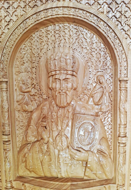 Різьблена ікона Святителя та Чудотворця Миколая Мирлікійського № 8003, Луцьк