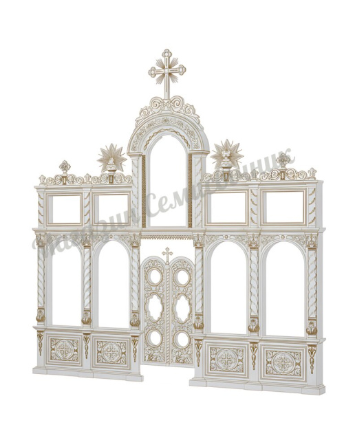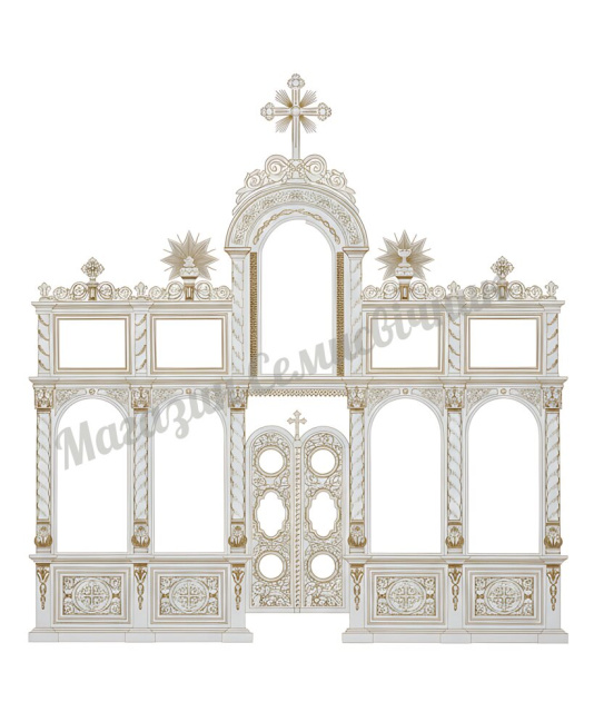 Наш іконостас представлений без ікон, пропонуючи вам ідеальне чисте полотно для розміщення шанованих храмових образів.